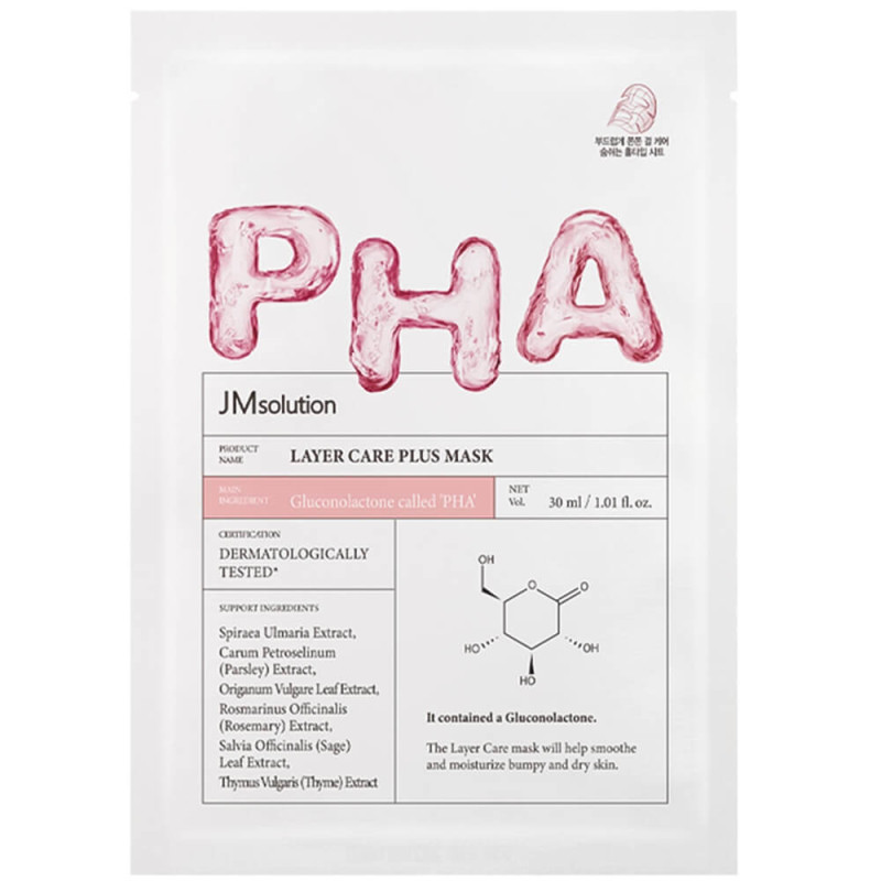 JM SOLUTION Маска тканевая с pha-кислотой layer care plus mask, 30 мл
