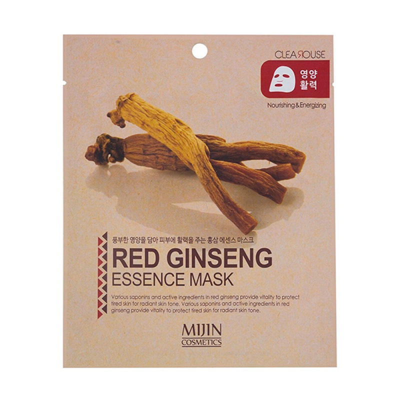 Тканевая маска Red Ginseng Essence Mask от Mijin пропитана эссенцией, содержащей экстракт красного женьшеня. Этот ингредиент способствует активному питанию и увлажнению кожи, предотвращает её обезвоживание, обновляет и регенерирует клетки.